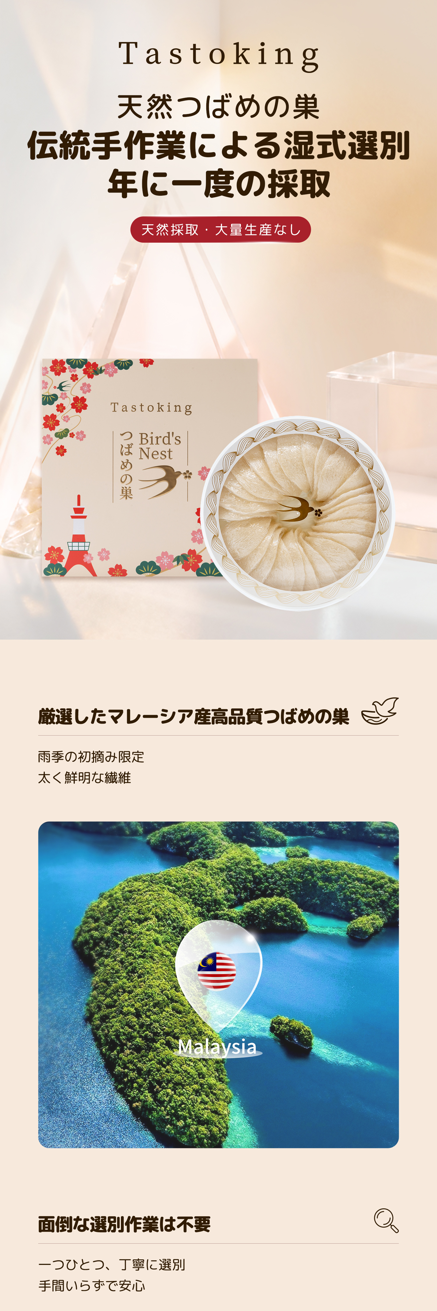特徴:つばめの巣本来の風味を保ち、なめらかな食感。
