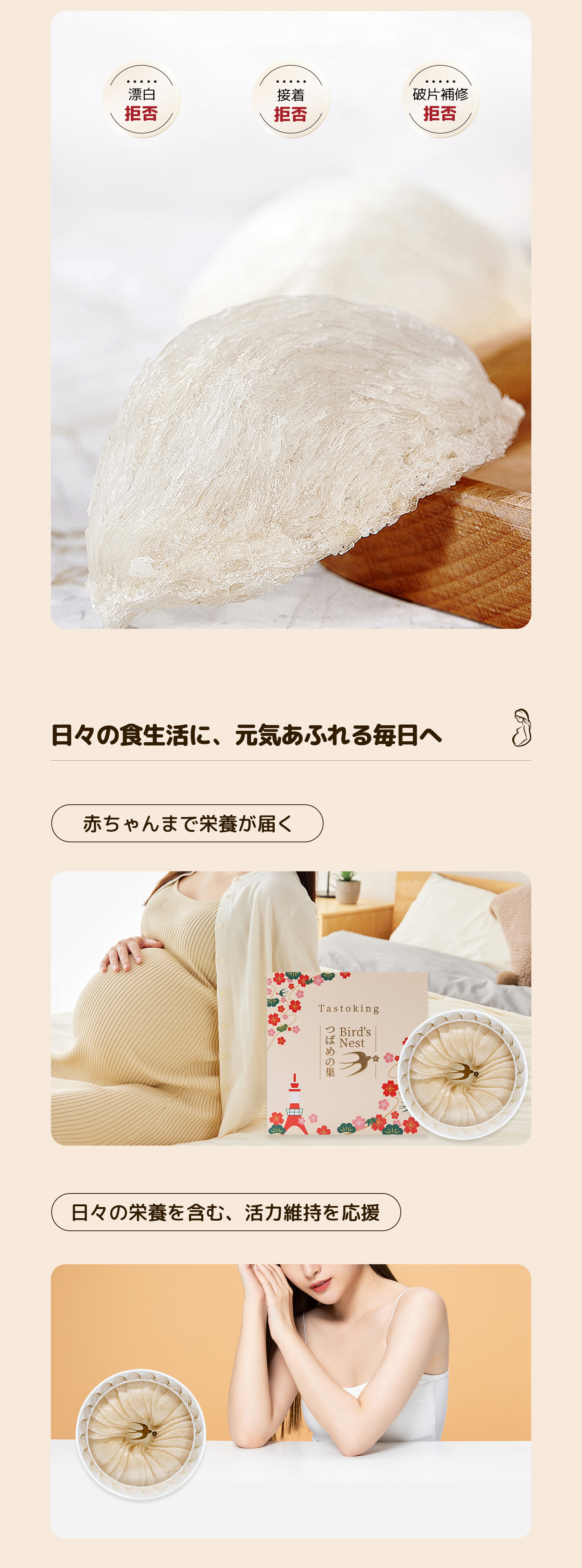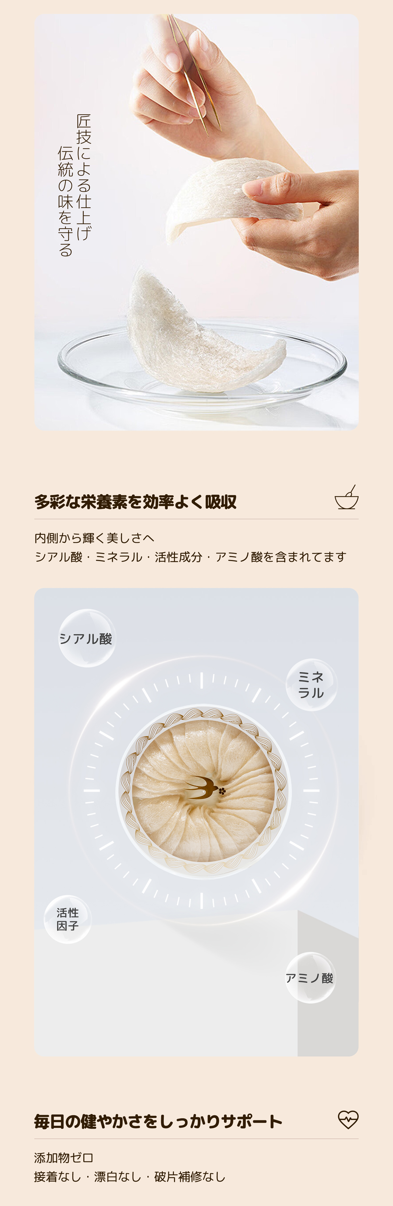 特徴:つばめの巣本来の風味を保ち、なめらかな食感。