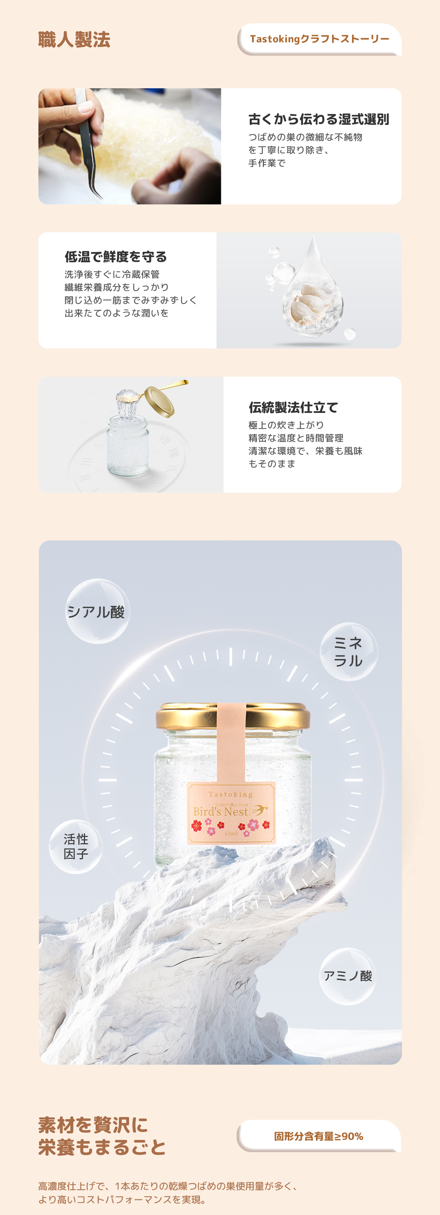 贅沢な美を引き出す、自然の力を感じるプレミアムつばめの巣。 Tastokingの新商品、バードネスト。砂糖を控えている方のために特別に開発されました。カスタマイズのため、お届けが2日遅れる場合がございます。